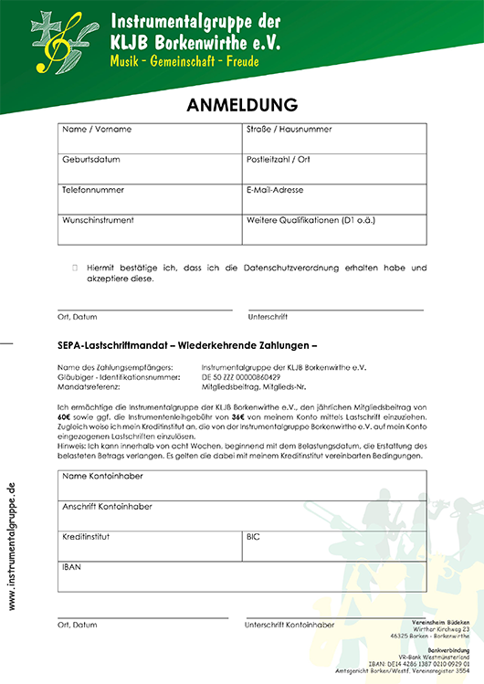 Mitglied werden / Instrument erlernen